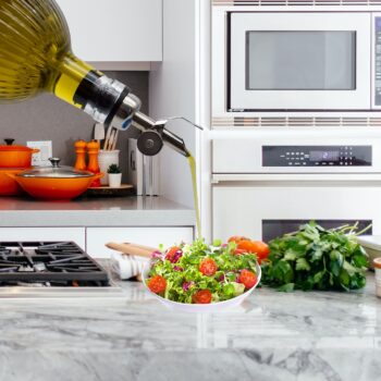 Wenn du größere Mengen wie einen 5-Liter-Kanister kaufst, fülle das Olivenöl nach und nach in kleinere, dunkle Flaschen um. So schützt du das Öl vor Licht und Luft und erhältst länger Geschmack und Qualität.